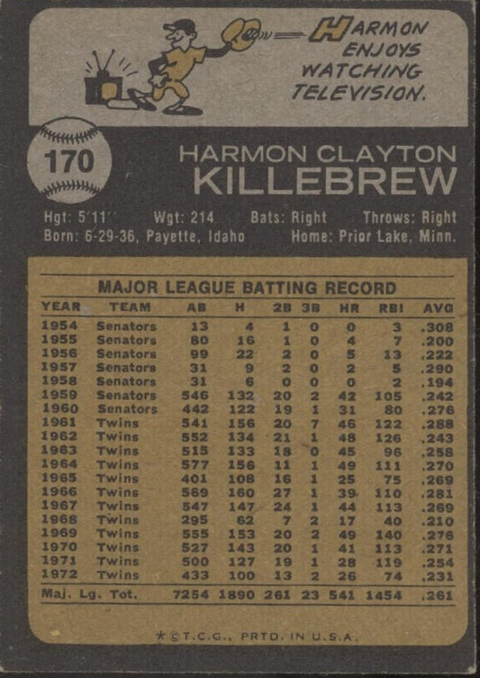 Harmon Killebrew 1973 Topps #170 Minnesota Twins VG