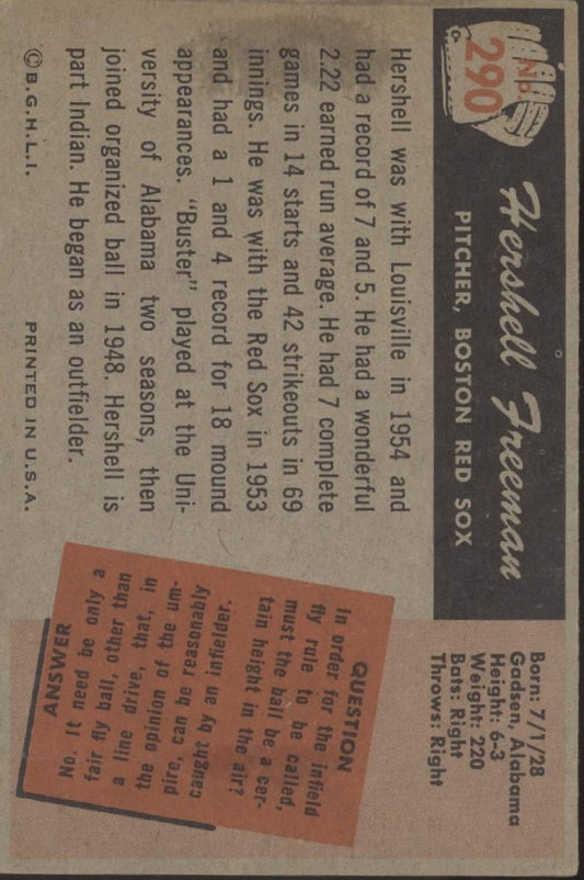 Hershell Freeman 1955 Bowman RC #290 Boston Red Sox VG-EX