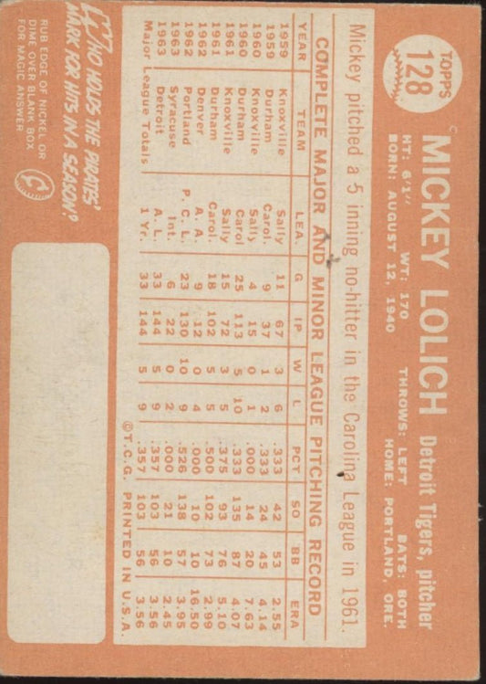 Mickey Lolich 1964 Topps RC #128 Detroit Tigers GD