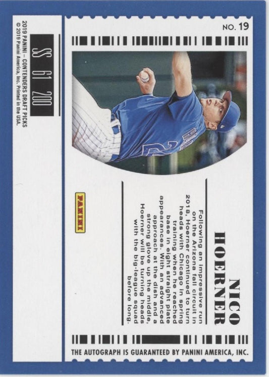 Nico Hoerner 2019 Panini Contenders Draft Picks Draft Ticket Blue Auto 76/99 #19