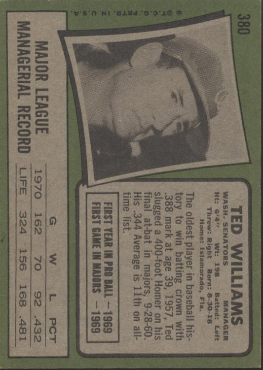 Ted Williams 1971 Topps #380 Washington Senators VG #1