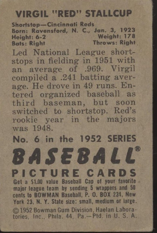 Virgil Stallcup 1952 Bowman #6 Cincinnati Reds VG-EX