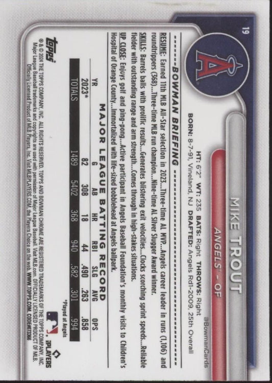 Mike Trout 2024 Bowman Chrome Royal Blue Mojo Refractor 110/175 #19
