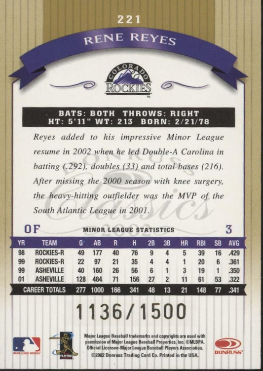 Rene Reyes 2002 Donruss Classics RC 1136/1500 #221