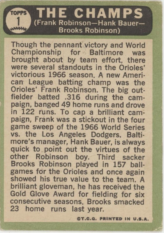 The The Champs 1967 Topps Frank Robinson / Hank Bauer / Brooks Robinson #1 GD #1