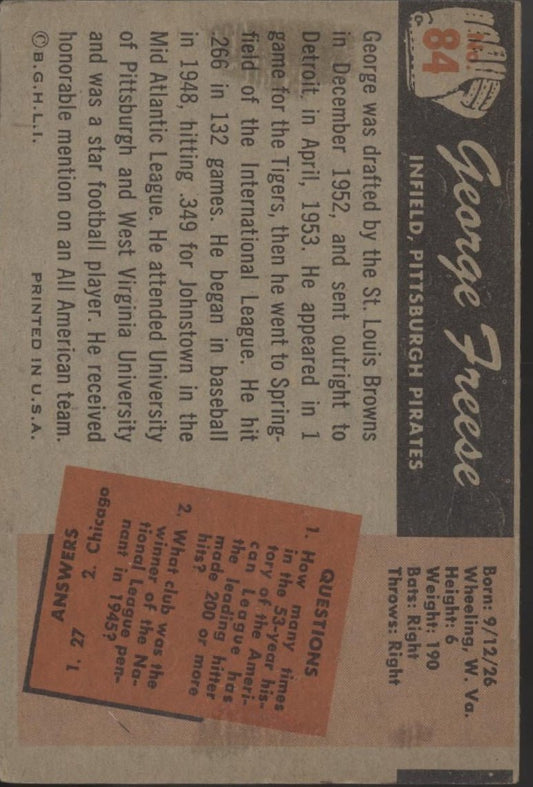 George Freese 1955 Bowman RC #84 Pittsburgh Pirates VG