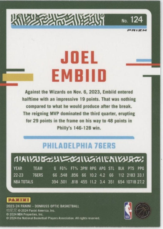 Joel Embiid 2023-24 Panini Donruss Optic Purple Shimmer Prizm #124