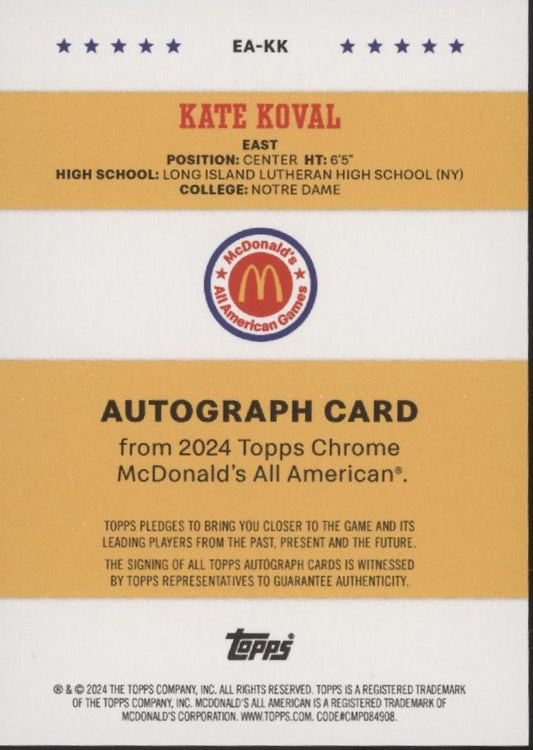 Kate Koval 2024 Topps Chrome McDonald's All American Auto #EA-KK