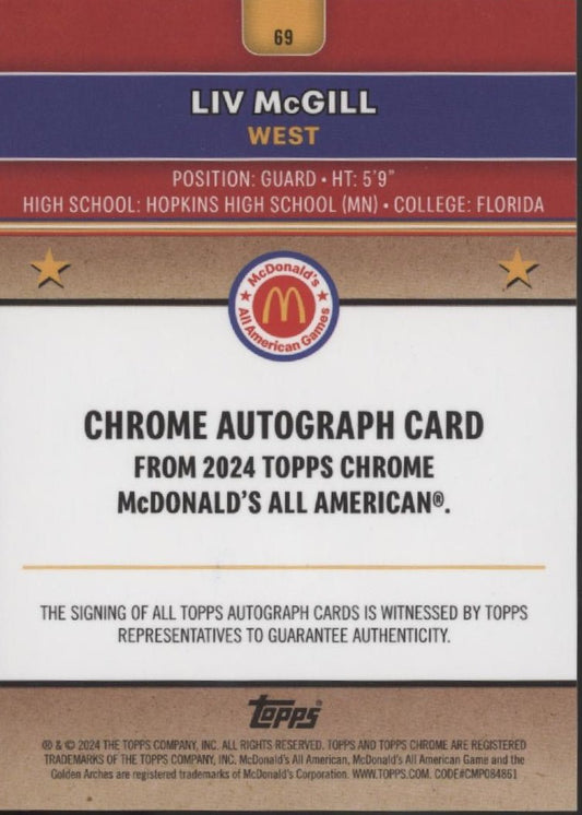 Liv McGil 2024 Topps Chrome McDonald's All American Blue Ray Wave Refractor Auto