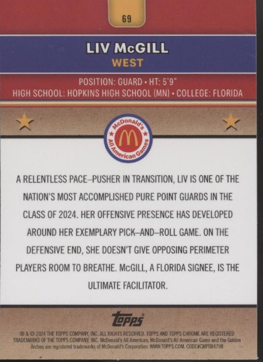 Liv McGil 2024 Topps Chrome McDonald's All American Purple Lava Refractor 31/99