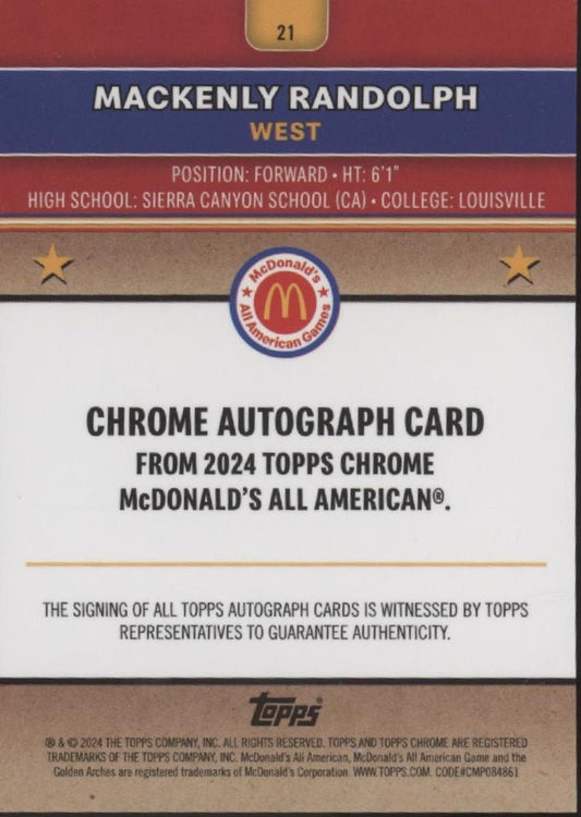 Mackenly Randolph 2024 Chrome McDonald's All American Black Refractor Auto /10