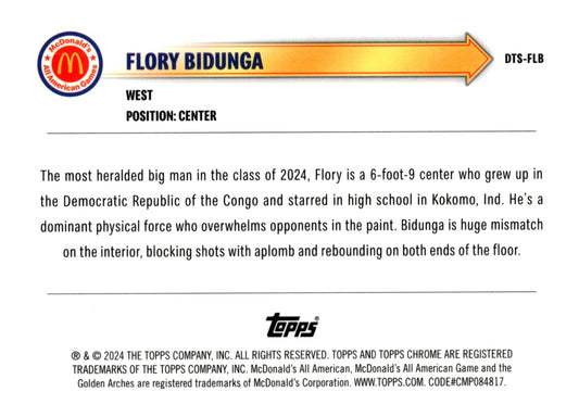 Flory Bidunga 2024 Topps Chrome McDonald's All American Drive-Thru Blue Ray Wave