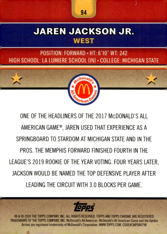 Jaren Jackson Jr. 2024 Topps Chrome McDonald's All American Blue Ray Wave #94