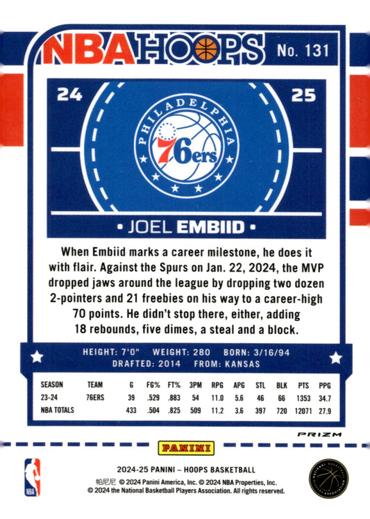 Joel Embiid 2024-25 Panini Hoops Prizm #131