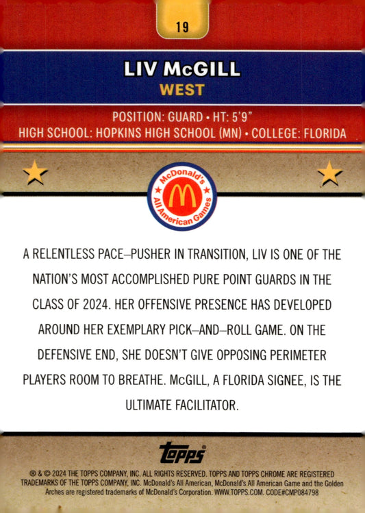 Liv McGill 2024 Topps Chrome McDonald's All American Blue Ray Wave Refractor