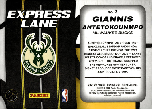 Giannis Antetokounmpo 2021-22 Panini Donruss Optic Express Lane #3