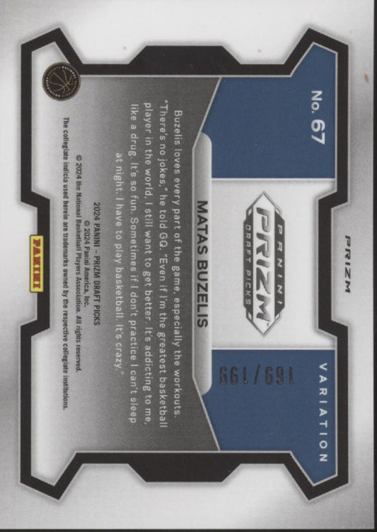Matas Buzelis 2024 Panini Prizm Draft Picks Variation Blue Prizm RC 169/199 #67Regular price $10.00Regular priceUnit price per-