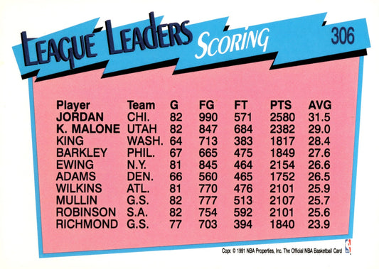 Michael Jordan / Karl Malone 1991-92 NBA Hoops League Leaders #306Regular price $2.00Regular priceUnit price per-