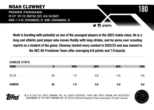 Noah Clowney 2024 Topps Chrome Pink Refractor RC #180Regular price $2.00Regular priceUnit price per-