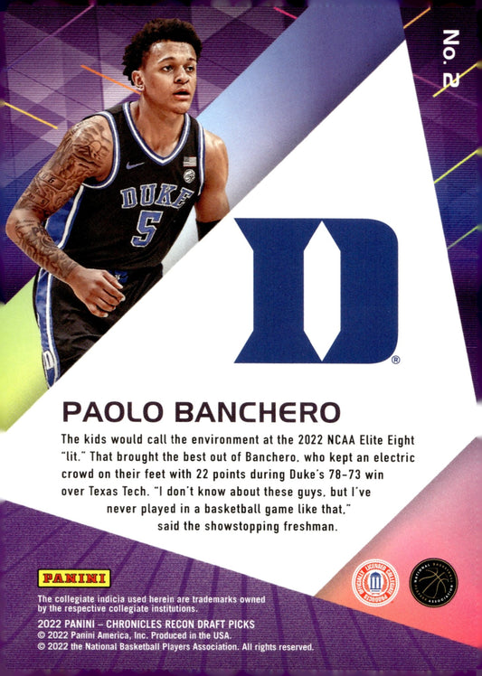 Paolo Banchero 2022 Panini Chronicles Recon Draft Picks RC #2 #1Regular price $2.00Regular priceUnit price per-