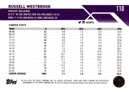 Russell Westbrook 2024 Topps Chrome Purple Refractor 104/349 #110Regular price $2.00Regular priceUnit price per-
