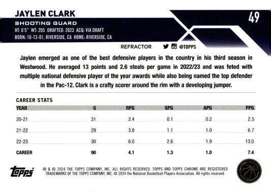 Jaylen Clark 2024 Topps Chrome Refractor RC #49Regular price $2.00Regular priceUnit price per-