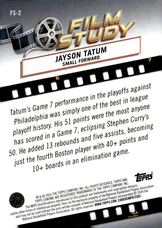 Jayson Tatum 2024 Topps Chrome Film Study Refractor #FS-2Regular price $2.00Regular priceUnit price per-