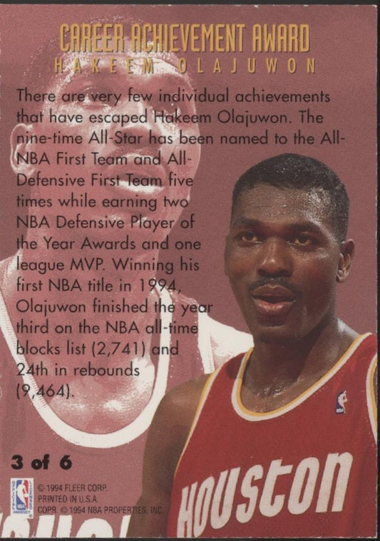 Hakeem Olajuwon 1994-95 Fleer Career Award Achievement #3Regular price $5.00Regular priceUnit price per-