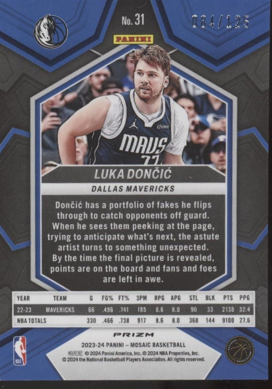 Luka Doncic 2023-24 Panini Mosaic Blue Ice Prizm 084/125 #31Regular price $60.00Regular priceUnit price per
