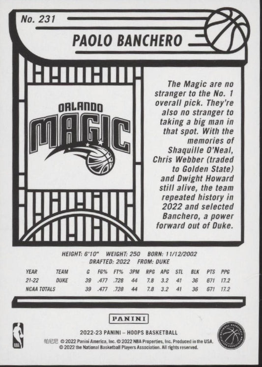 Paolo Banchero 2022-23 Panini Hoops RC #231Regular price $20.00Regular priceUnit price per-