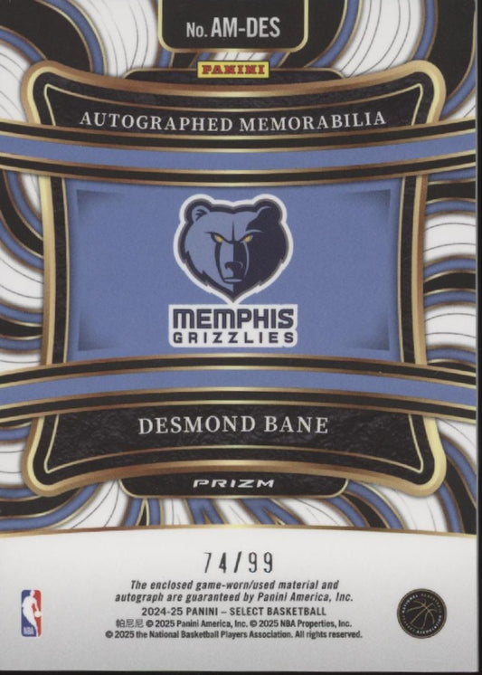 Desmond Bane 2024-25 Panini Select Prizm Swatch Auto 74/99 #AM-DES