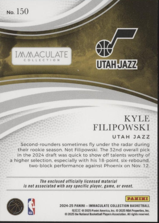Kyle Filipowski 2024-25 Panini Immaculate Collection Blue Swatch RC 45/49 #150