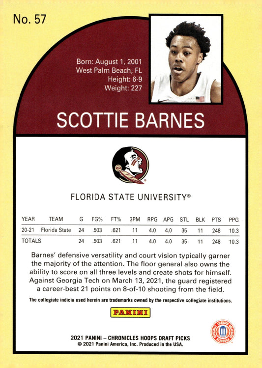 Scottie Barnes 2021 Panini Chronicles Hoops Draft Picks RC #57