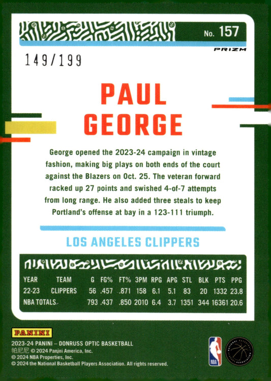 Paul George 2023-24 Panini Donruss Optic Orange Prizm 149/199 #157