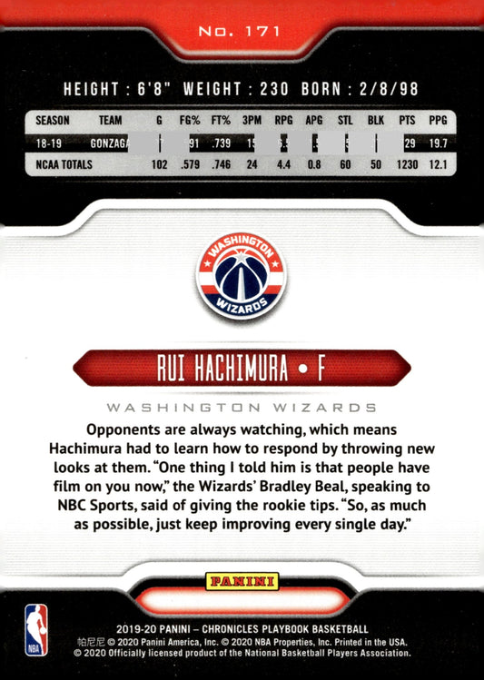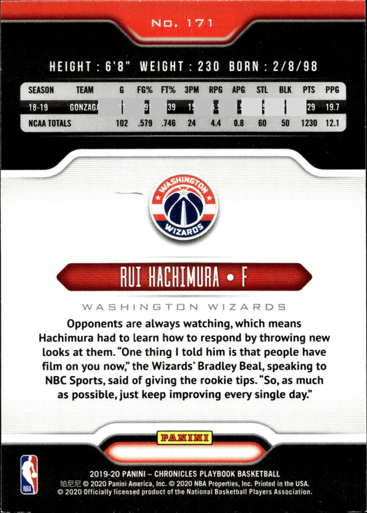 Rui Hachimura 2019-20 Panini Chronicles Playbook RC #171 #1