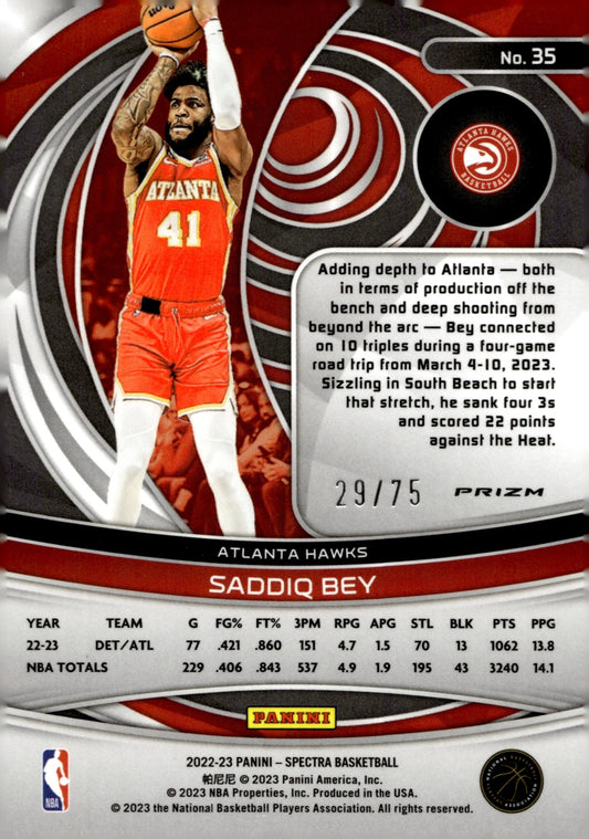Saddiq Bey 2022-23 Panini Spectra Supernova Prizm 29/75 #35