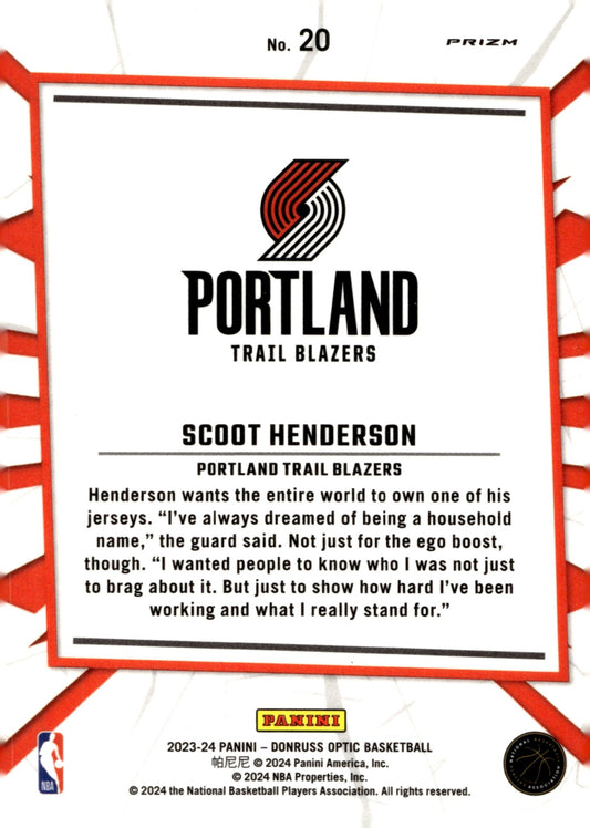 Scoot Henderson 2023-24 Panini Donruss Optic My House Prizm RC #20