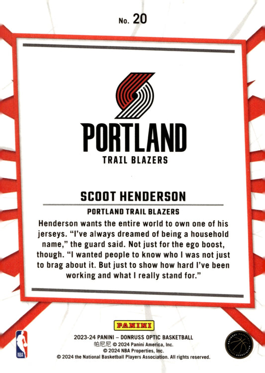 Scoot Henderson 2023-24 Panini Donruss Optic My House RC #20