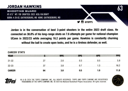 Jordan Hawkins 2024 Topps Chrome RC #63
