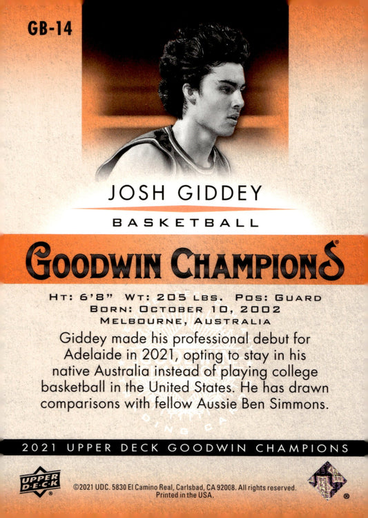 Josh Giddey 2021 Upper Deck Goodwin Champions All World #GB-14