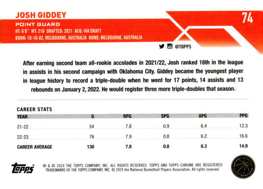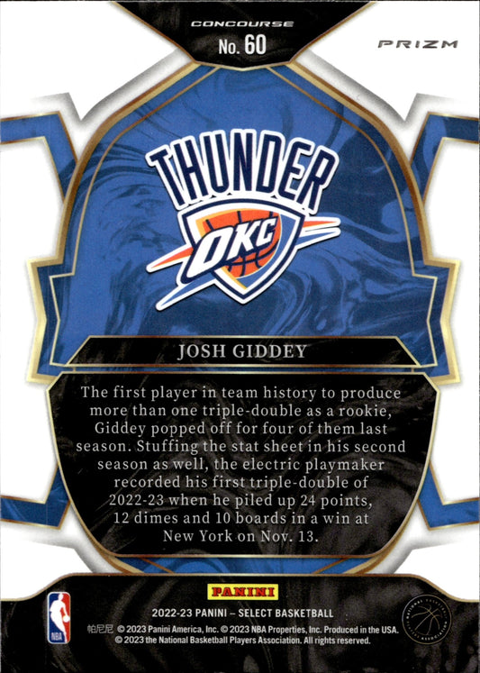 Josh Giddey 2022-23 Panini Select Red Wave Prizm #60