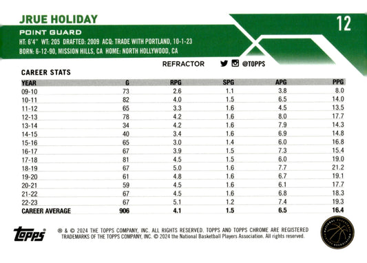 Jrue Holiday 2024 Topps Chrome Refractor #12