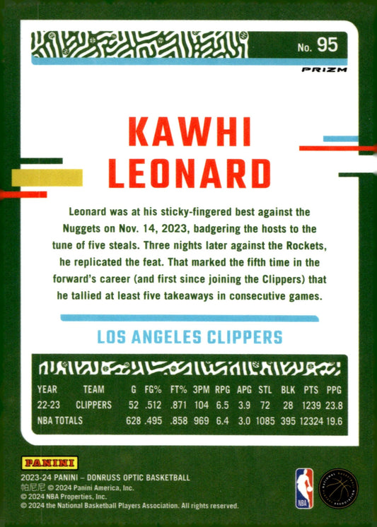 Kawhi Leonard 2023-24 Panini Donruss Optic Purple Shimmer Prizm #95