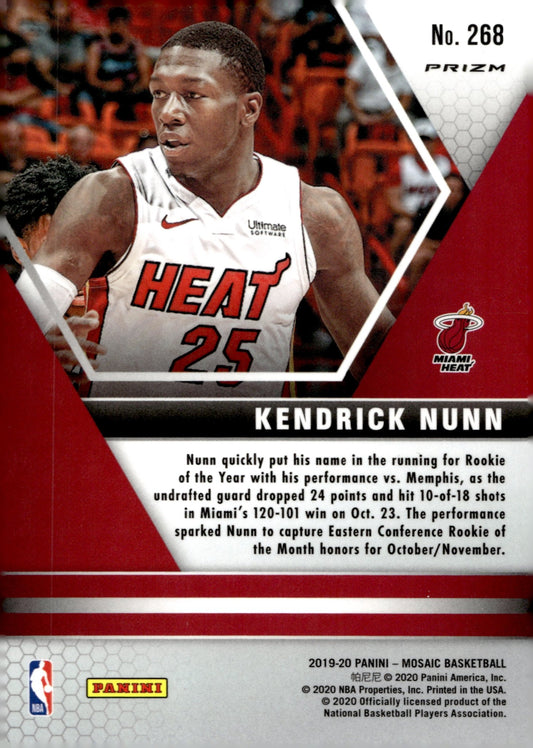 Kendrick Nunn 2019-20 Panini Mosaic NBA Debut Red Prizm RC #268