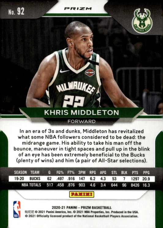 Khris Middleton 2020-21 Panini Prizm Silver Prizm #92