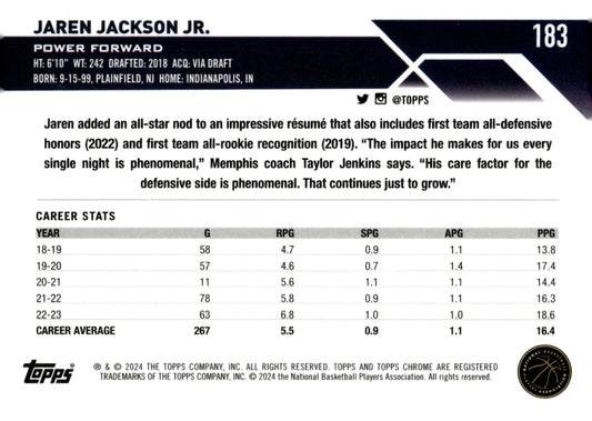 Jaren Jackson Jr. 2024 Topps Chrome #183