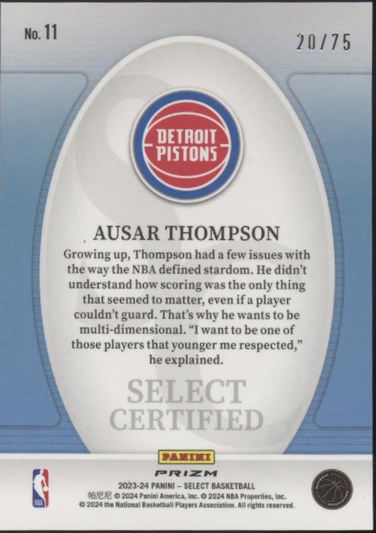 Ausar Thompson 2023-24 Panini Select Certified Purple Ice Prizm 20/75 RC #11