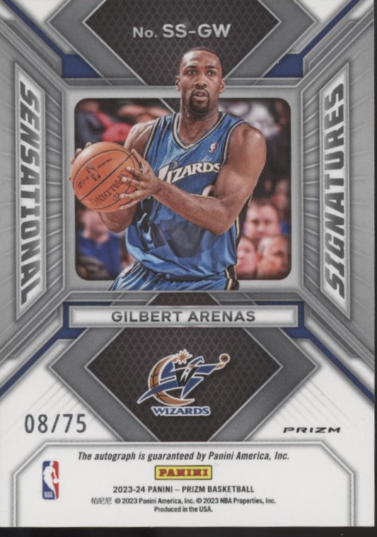 Gilbert Arenas 2023-24 Panini Prizm Sensational Signatures Red Prizm Auto 08/75