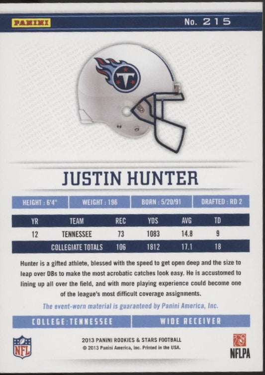 Justin Hunter 2013 Panini Rookies & Stars Longevity Swatch RC 249/299 #215