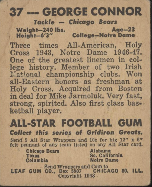 George Connor 1948 Leaf #37 Chicago Bears PR #1